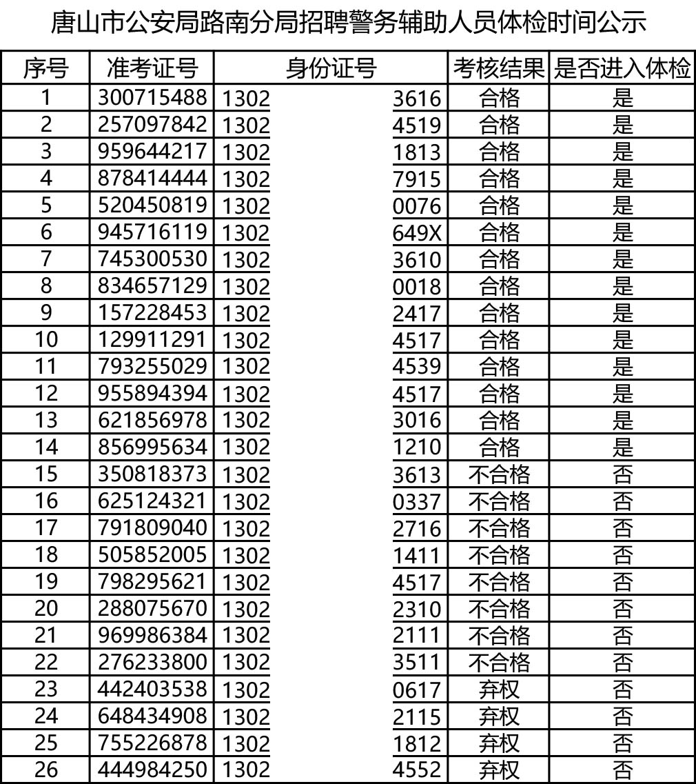 進(jìn)入體檢環(huán)節(jié)考生,體檢費(fèi)用考生自理,體檢環(huán)節(jié)相關(guān)體檢指標(biāo)嚴(yán)格管控,一票否決。